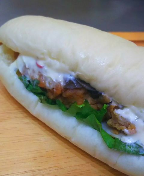 中には、しょうが焼きとレタス、マヨネーズをサンドしております꒡̈⃝✰︎